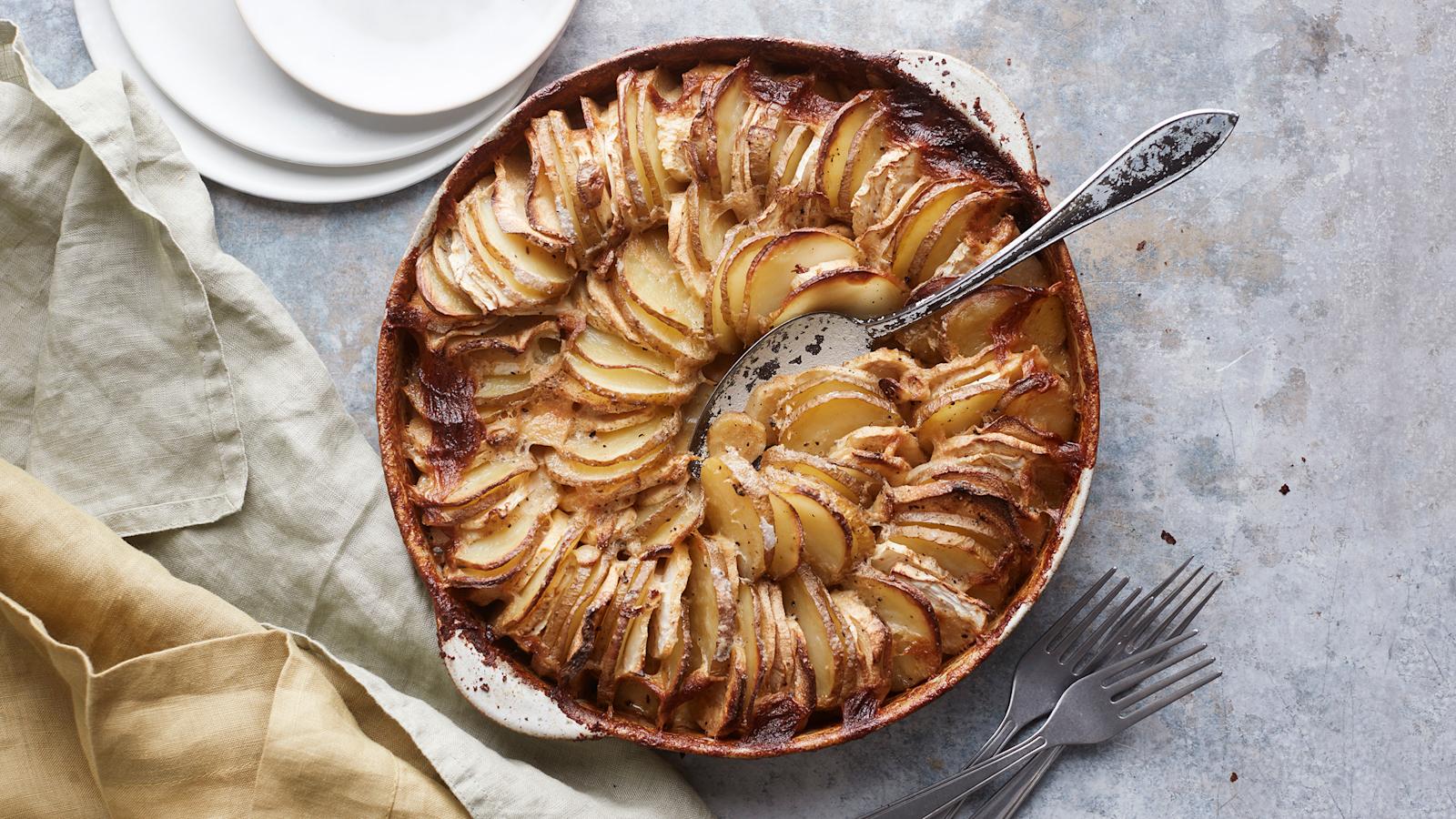 Valmista näyttävä juuresvuoka tutuista aineksista: perunasta, palsternakasta ja juuriselleristä. Kermaisen mehevä uuniruoka muistuttaa perinteisiä valkosipuliperunoita, mutta palsternakka ja juuriselleri antavat perunavuoalle hienon lisämaun.
