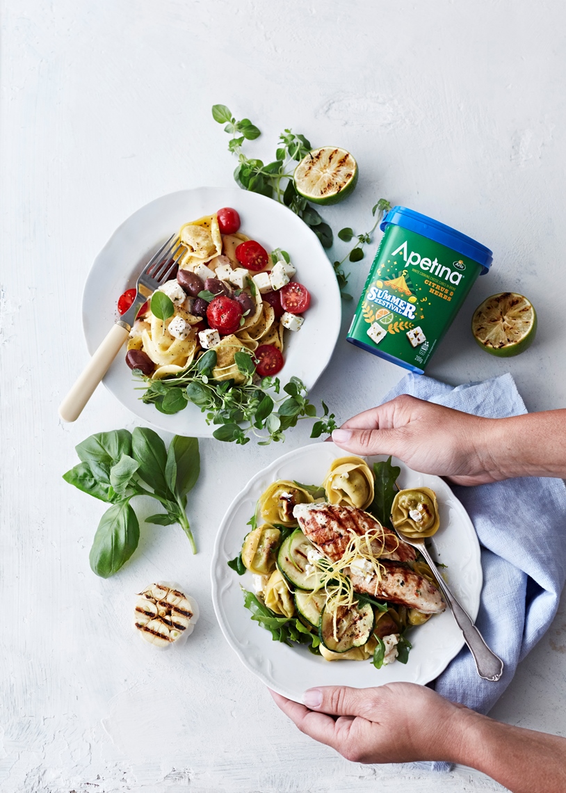 Lisää keitetyt, valutetut tortellinit kesäkurpitsaseokseen. Tarjoa kalkkunan ja raastetun parmesaanin kanssa.