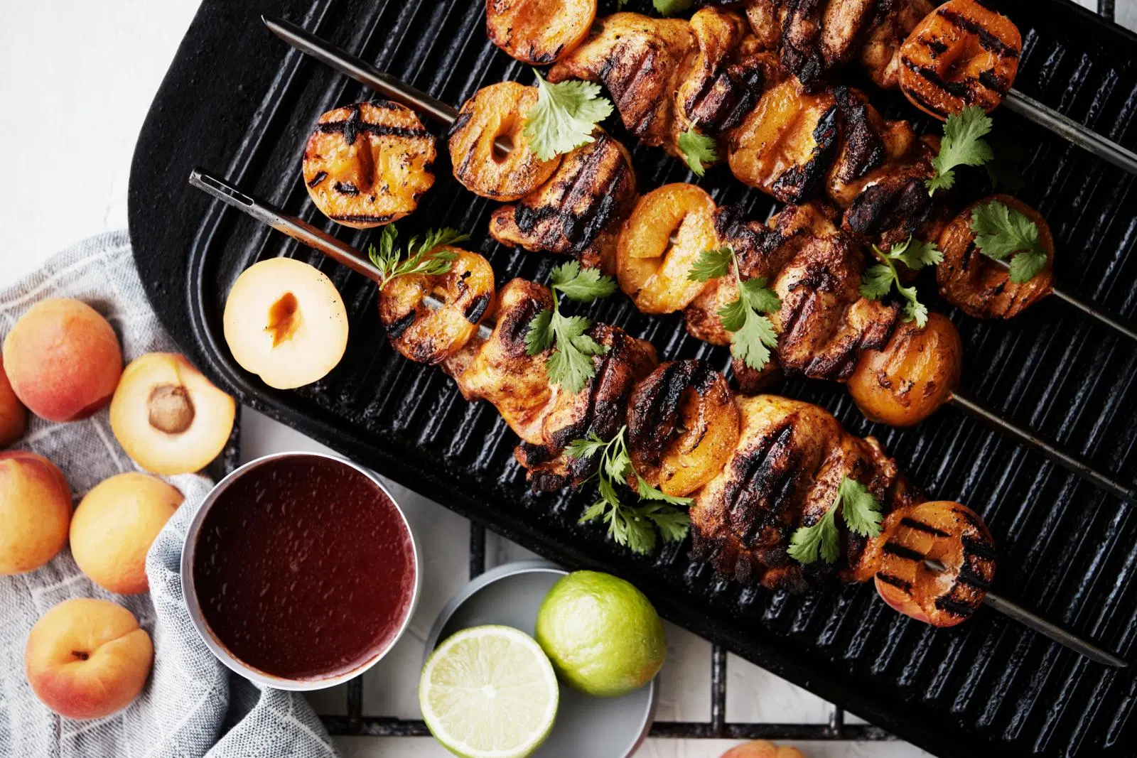 Broilerin paistileike ja makeat aprikoosit kypsyvät grillivartaissa koko perheen herkuksi. Vartaiden kypsyessä sekoitat koukuttavan hyvän soija-hunajakastikkeen.