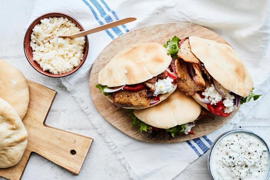Kätke Vöner-lastut muhkeiden pitaleipien sisuksiin yhdessä herkullisen tzatzikin, kukkakaaliriisin, fetan ja raikkaiden tuoreiden kasvisten kanssa.