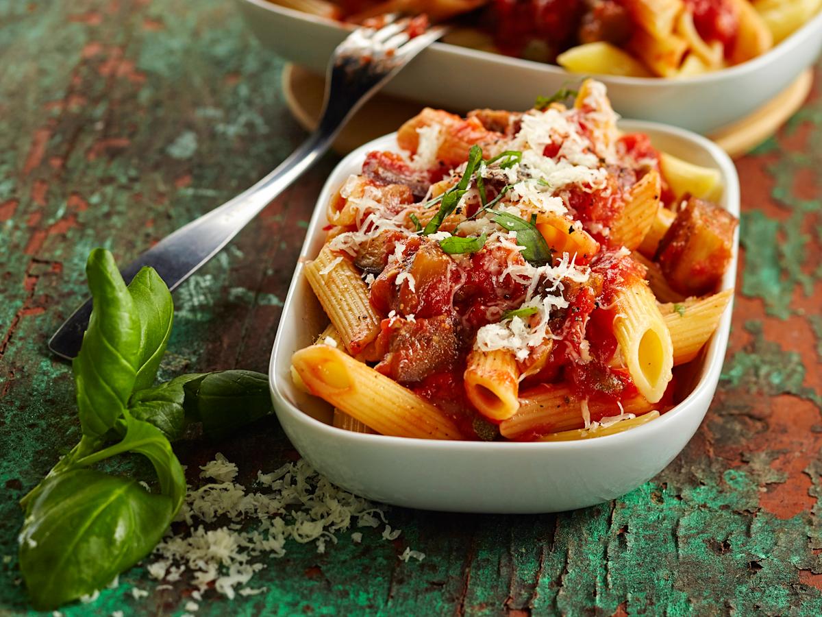 Munakoisopasta on hyvää ja ruokaisaa. Koristele kasvispasta resepti hienonnetulla basilikalla ja parmesaaniraasteella.