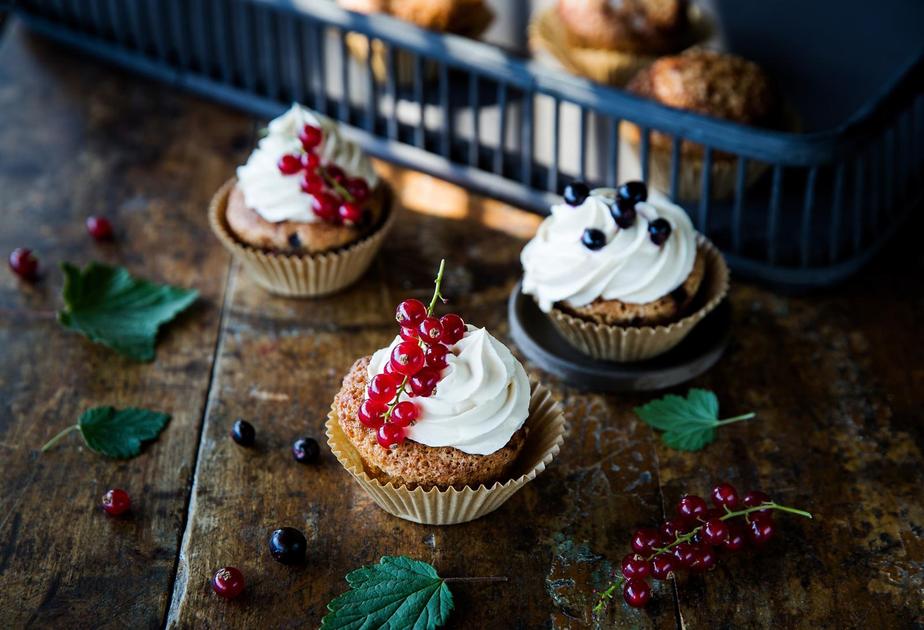 Kinuskirahkalla kuorrutetut herukkamuffinssit