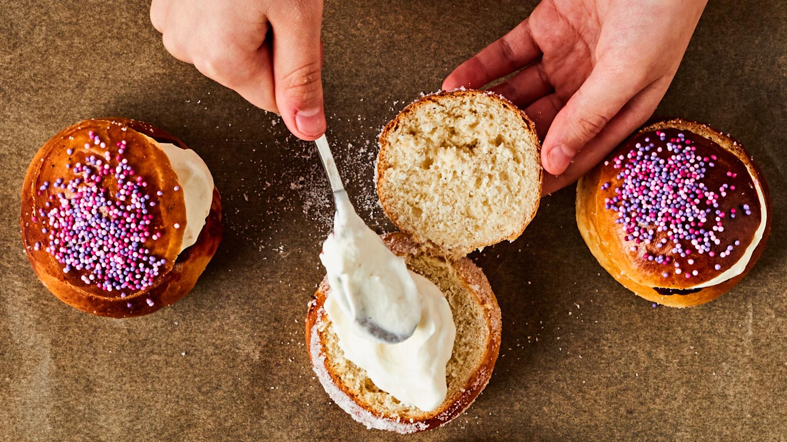 Itse tehty laskiaispulla vie jalat alta. Hurvittele koristeilla ja anna pullille kaunis sokeri- tai hauska nonparellihuntu.