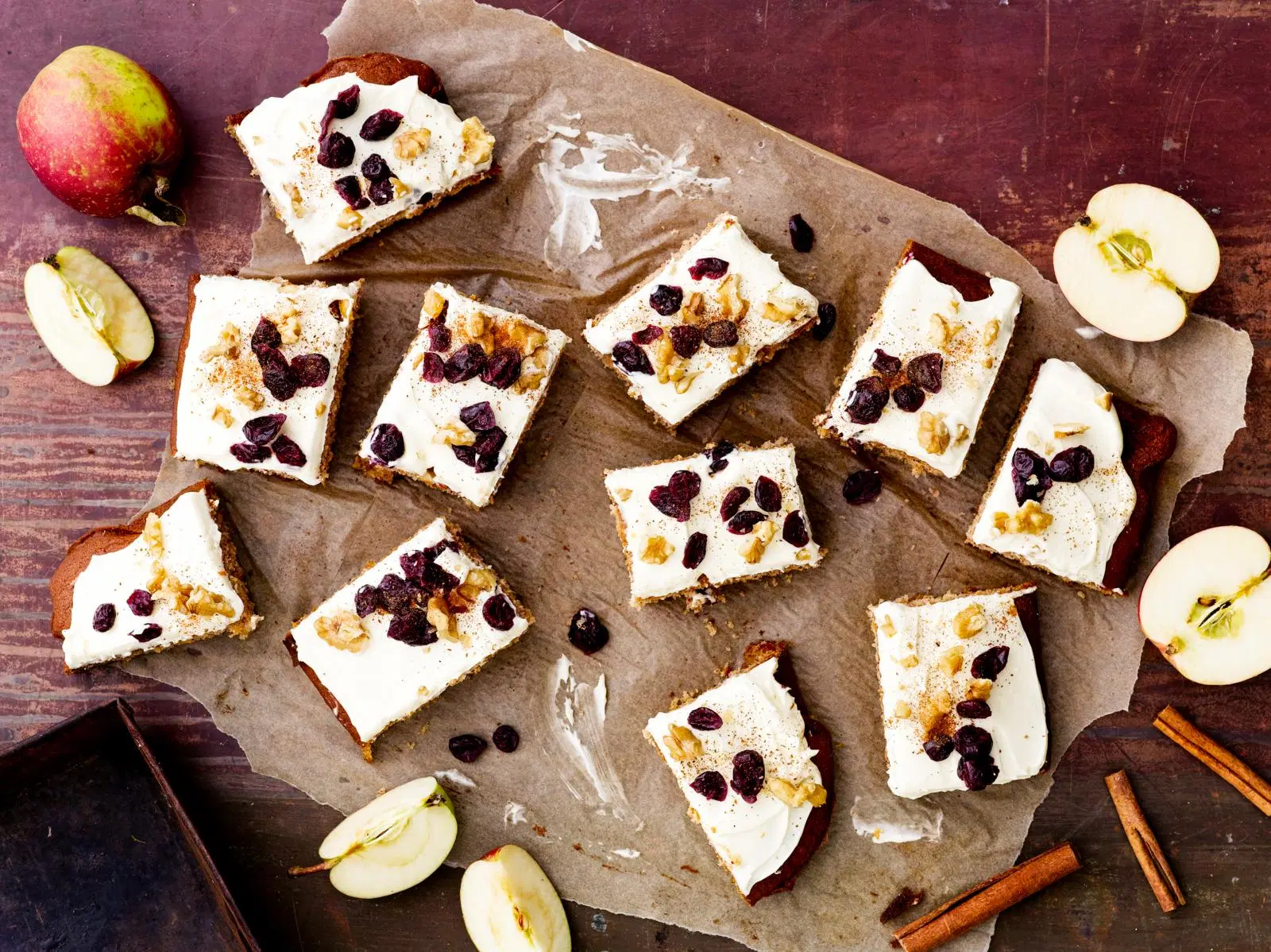 Rouhi pähkinät. Koristele omenapiirakka pähkinärouheella, kuivatuilla karpaloilla ja kanelilla.