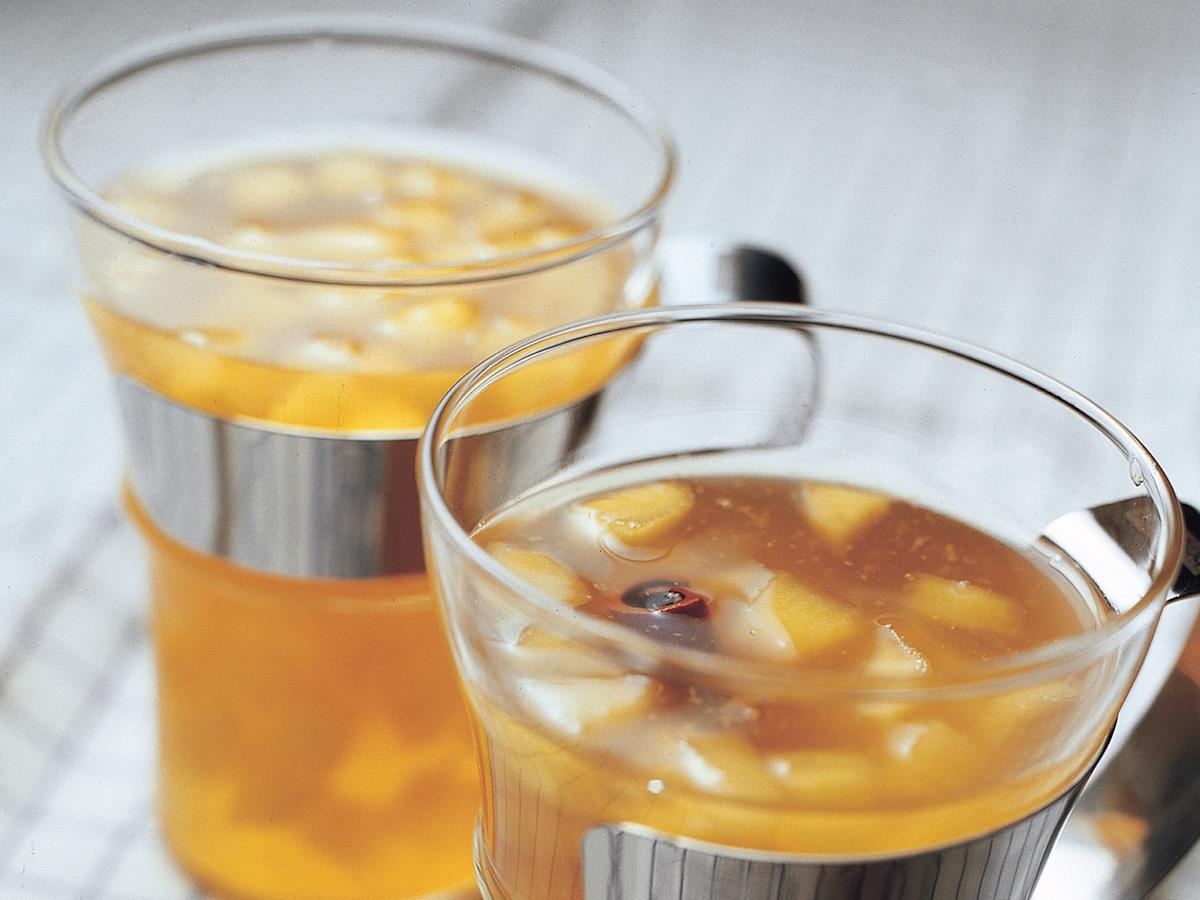 Pese sitruuna huolellisesti. Kiehauta omenamehu, kanelitanko ja sokeri sekä sitruunan raastettu kuori ja mehu. Lisää kuoritut ja pieniksi kuutioiksi leikatut omenat ja keitä ne juuri ja juuri pehmeiksi. Sekoita perunajauhot veteen ja lisää ohuena nauhana kuumaan liemeen. Kiehauta ja nosta syrjään jäähtymään. Ripottele keiton pinnalle sokeria kuortumisen estämiseksi. Tarjoile keitto haaleana maidon kanssa.'