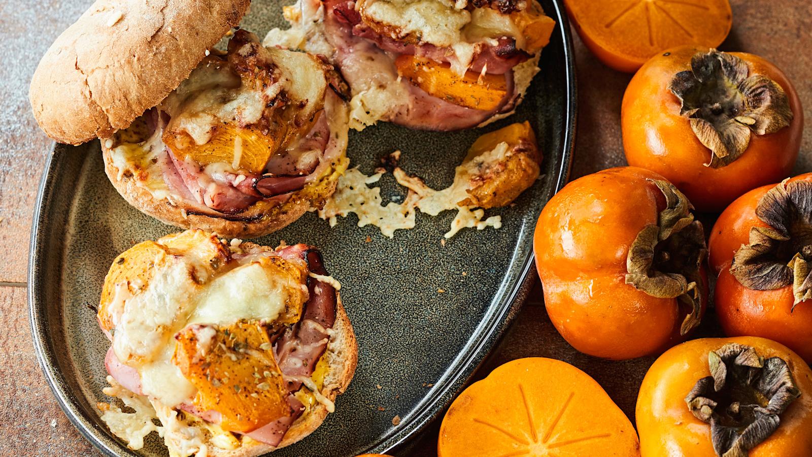 Lämppäreissä yhdistyvät kaksi ikisuosikkia: lämpimät voileivät ja hampurilainen. Sinapilla ryyditetyiden sämpylöiden välissä on suolaista kinkkua ja makeaa persimonia.