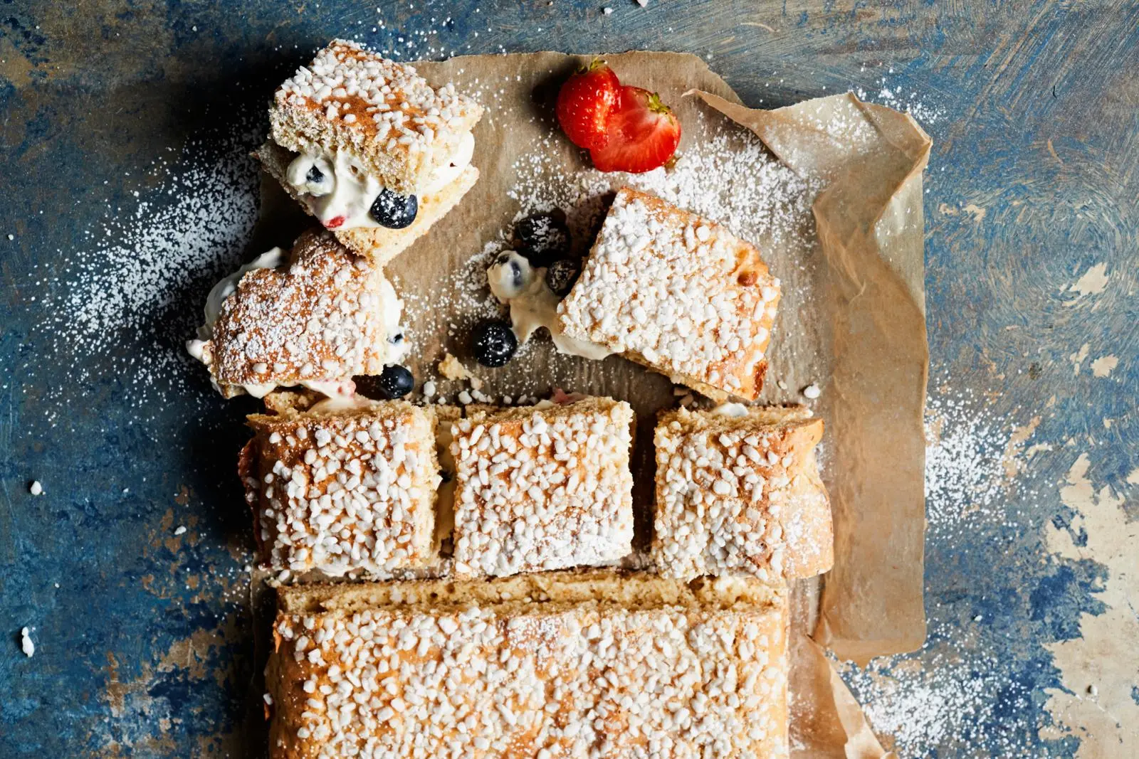 Määrä Ainesosa 100 g pakastemansikoita 100 g pakastemustikoita 2 dl vispikermaa 125 g maitorahkaa 3 rkl sokeria 1 tl vaniljasokeria - 5