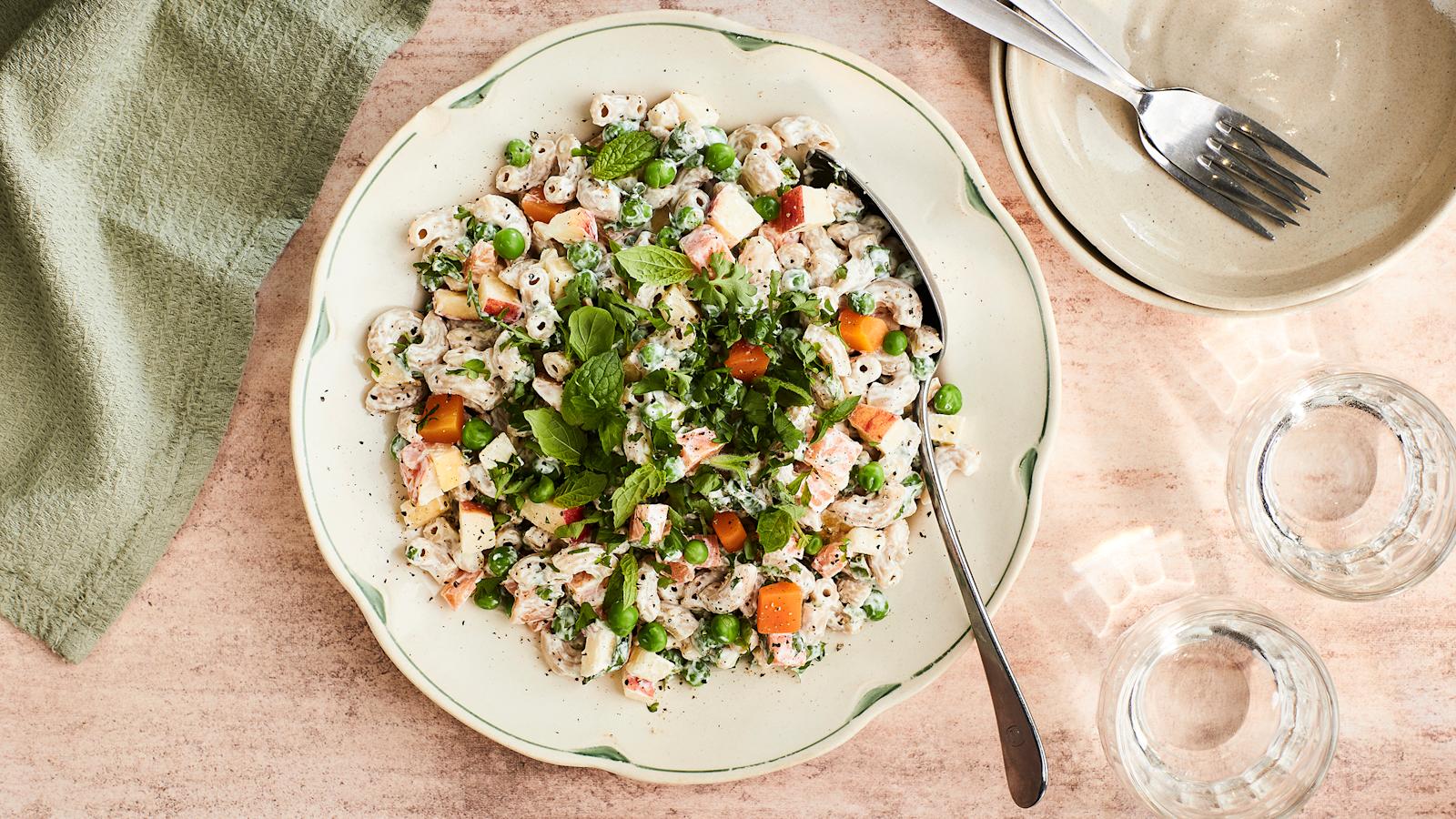 Perinteinen makaronisalaatti on suosittu lisuke grilliruoalle, mutta myös kätevä salaattilounas, jonka voi tehdä jääkaappiin etukäteen. Kevyempi pastasalaatti syntyy, kun vaihdat ranskankerman kermaviiliin.