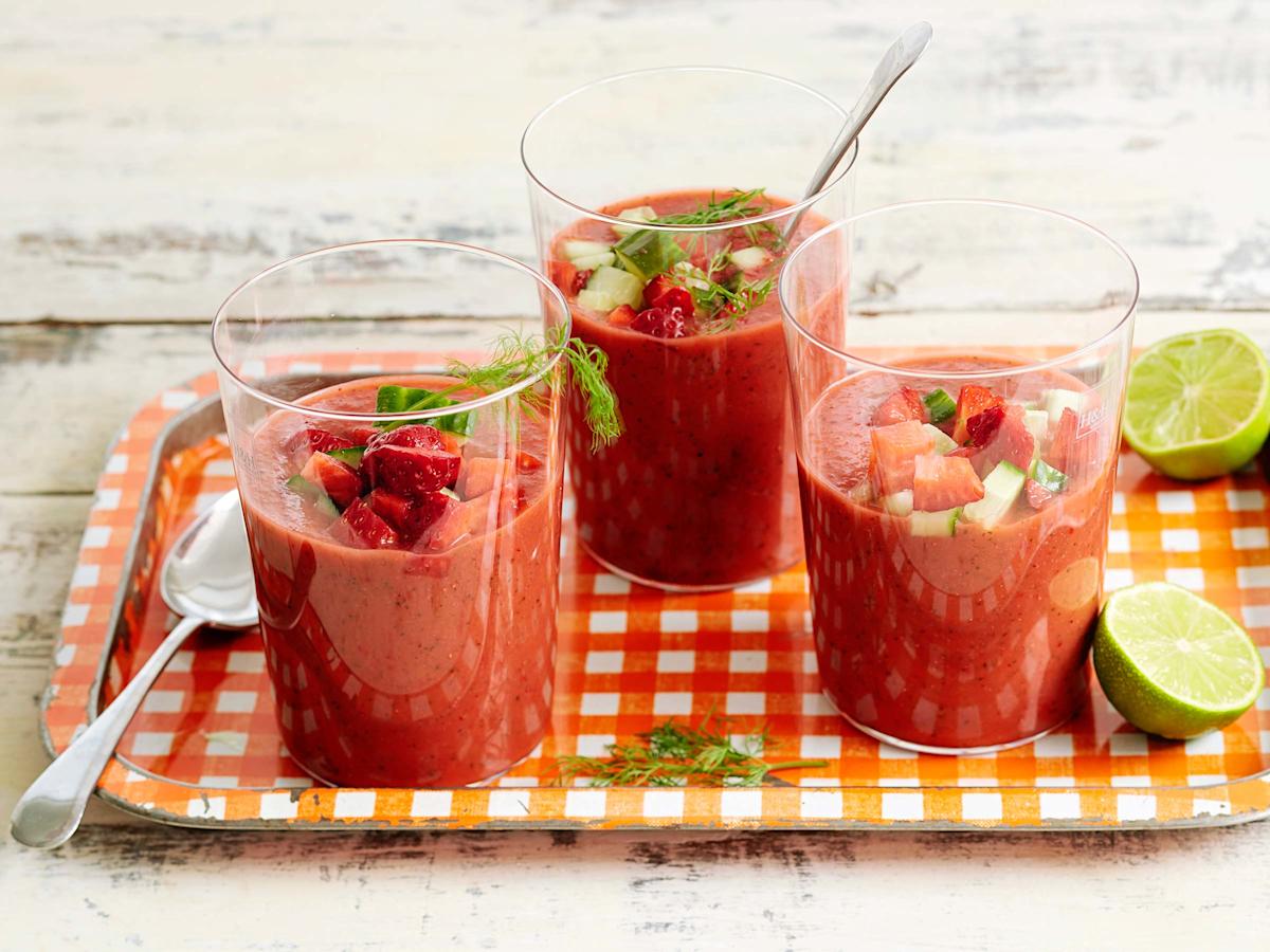 Perinteiseen espanjalaiseen gazpachoon käytetään tomaatteja, mutta vaihda ne vaihteeksi mansikoihin! Mansikat tuovat keitolle ihanasti makeutta ja hapokkuutta.