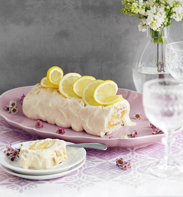 Makea manteleilla maustettu marenki ja kirpeä sitruunatäyte ovat täydellinen makupari, jota täydentää pinnan viimeistelevä kermavaahto.