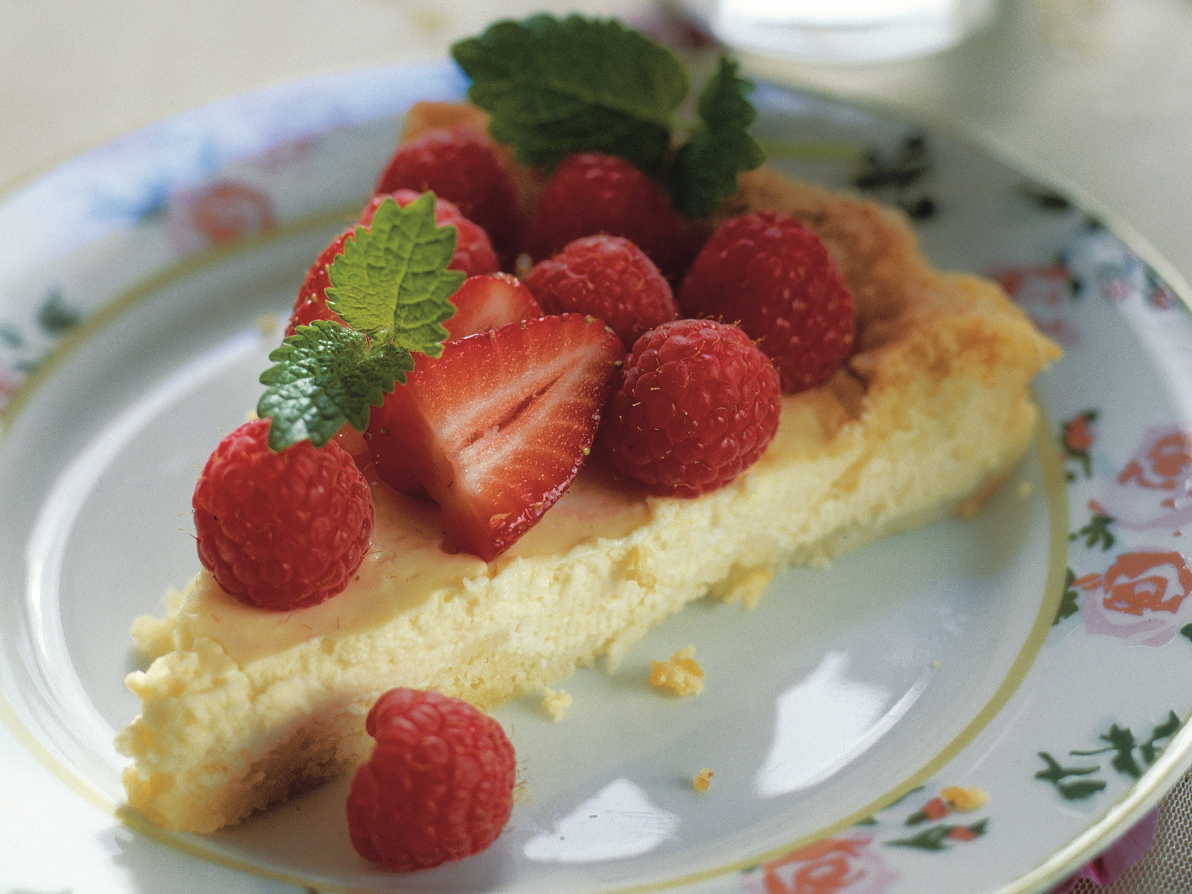 Vaahdota pehmeä margariini ja sokeri vaahdoksi. Lisää kananmuna vatkaten. Sekoita vehnä- ja perunajauhot sekä leivinjauhe kulhossa ja lisää vaahdon joukkoon. Lisää vesi ja sekoita tasaiseksi. Painele taikina voidellun piirasvuoan pohjalle ja reunoille. Sekoita täytettä varten maustamaton tuorejuusto, ruoanvalmistusjogurtti, sokeri ja kananmunat. Kaada seos piiraspohjan päälle ja paista piirasta 175 asteessa noin 50 minuuttia. Jäähdytä hyvin ja koristele tuoreilla marjoilla.