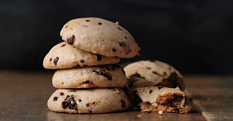 Sekoita maapähkinävoi notkeaksi. Lisää marshmallow fluff, vehnäjauho ja kananmuna tasaiseksi taikinaksi. Kääntele suklaarouhe joukkoon.
