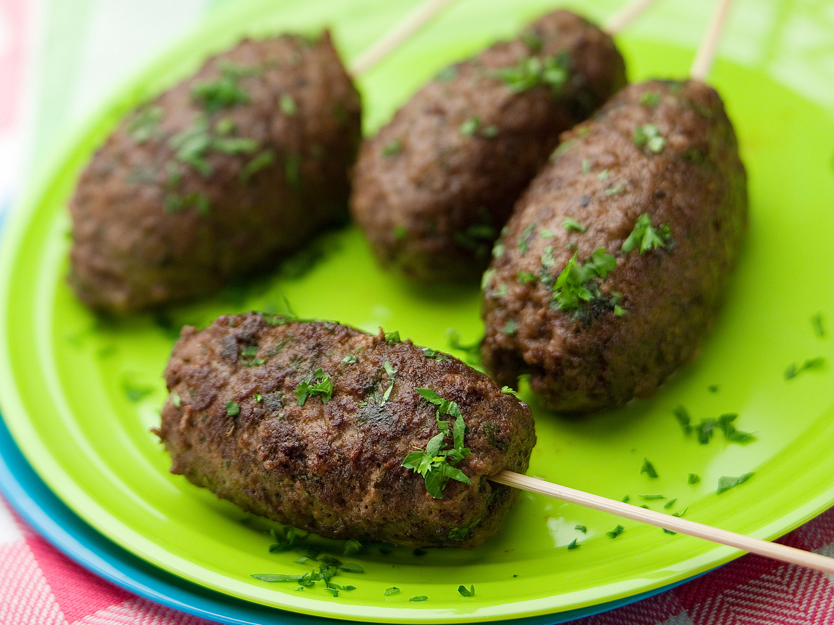 Nämä kepakot saavat makua mintusta ja persiljasta. Tarvitset jauhelihakepakoihin puisia grillitikkuja.