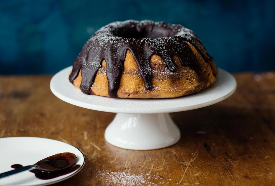 Voitele ja jauhota kakkuvuoka. Lusikoi taikinat vuokaan kerroksittain. Paista 180-asteisessa uunissa 35 minuuttia. Anna jäähtyä.