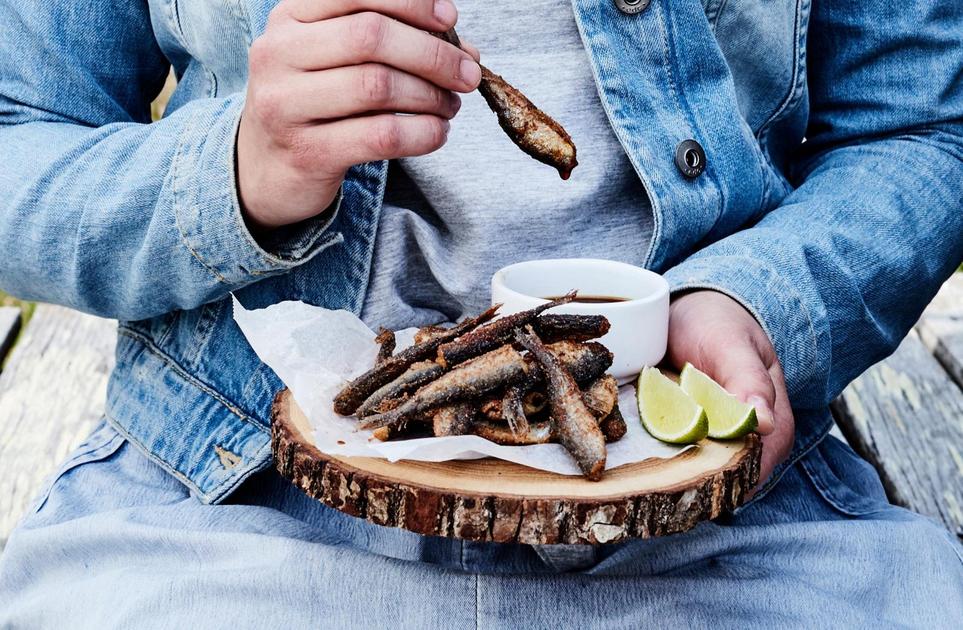 Näppimuikut ovat limellä maustetussa voissa paistettuja rapeita muikkuja. Soijadipin kanssa muikuista syntyy hauska suomalais-aasialainen naposteluruoka.