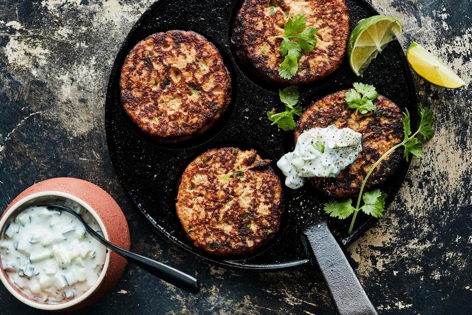 Pakastealtaan seiti tuunataan uudeksi arkiruokasuosikiksi, jossa valkosipuli, lime ja korianteri maustavat kalapihvit vastustamattomiksi kurkkudipin kanssa.