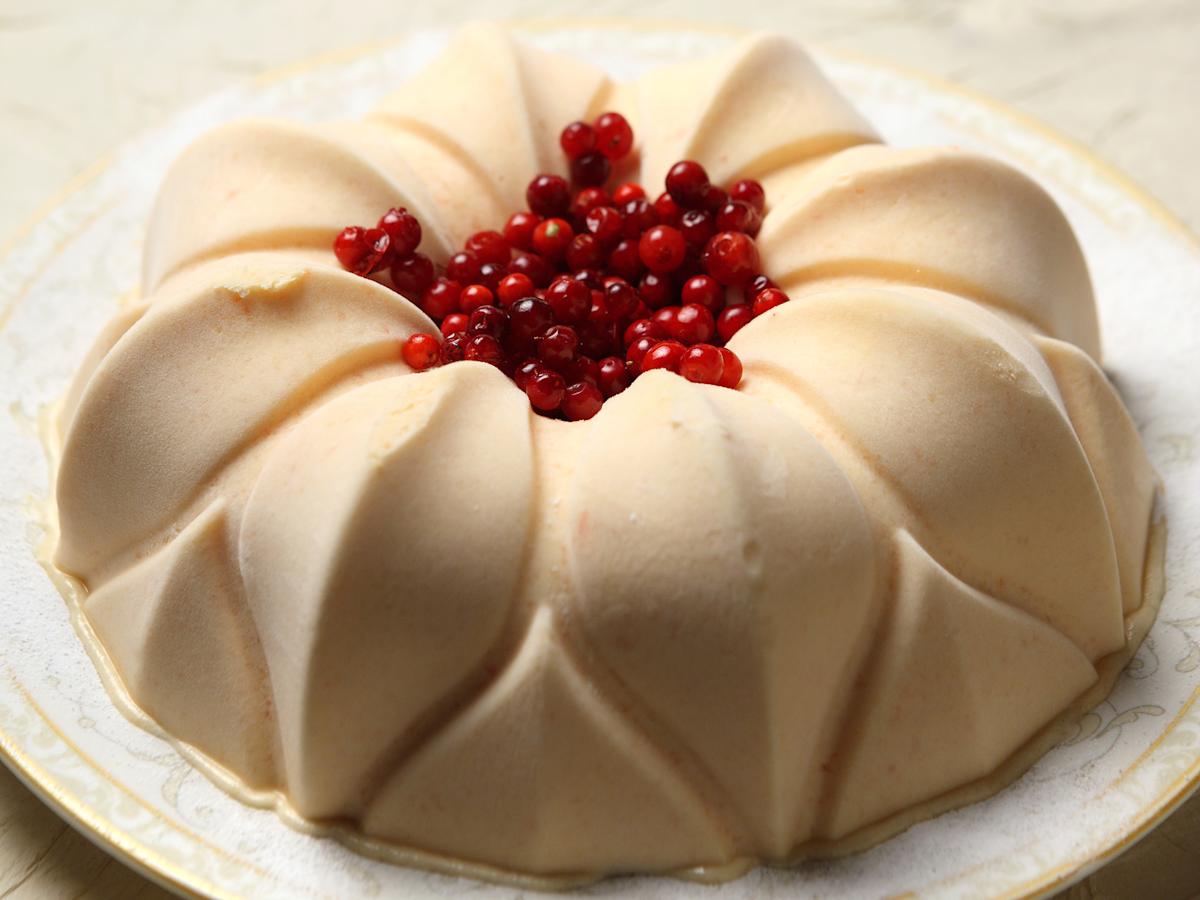 Kiehauta omenamehu ja hunaja kattilassa. Anna jäähtyä hetken. Vatkaa keltuaiset vaahdoksi. Kaada lämmin mehu-hunajaliemi keltuaisten joukkoon ohuena nauhana ja jatka vatkaamista, kunnes seos jäähtyy ja hieman sakenee. Sekoita hillo ja marjat munavaahtoon, mausta konjakilla ja kardemummalla. Vatkaa kerma vaahdoksi, kääntele munaseokseen. Kaada seos pyöreään jäädyke- tai kakkuvuokaan, pakasta ainakin seuraavaan päivään. Kumoa jäädyke tarjoilulautaselle pehmenemään puolisen tuntia ennen tarjoilua.