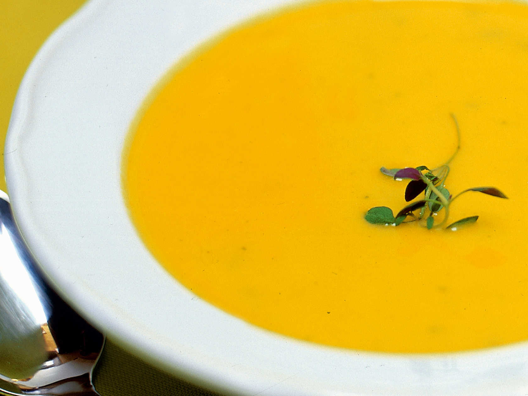 Kuori ja kuutioi perunat ja omenat. Pieni kukkakaali kukinnoiksi. Kuumenna öljy kattilassa. Kuullota kurkumaa ja kasviksia öljyssä noin 5 minuuttia. Lisää vesi ja liemikuutio.Keitä 15 minuuttia. Kuutioi kurkku. Soseuta keitto sauvasekoittimella ja lisää joukkoon ranskankerma. Kuumenna. Mausta suolalla tarvittaessa. Tarjoa keitto kurkkukuutioiden kanssa.