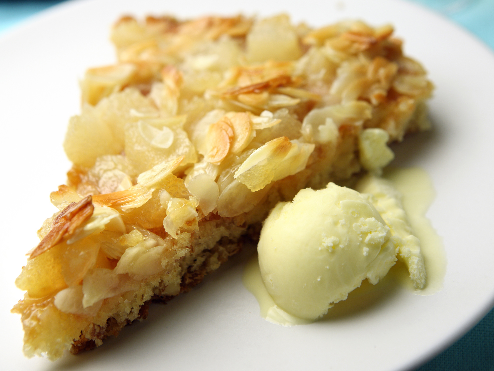 Vaahdota munat ja sokeri. Sekoita keskenään kuivat aineet ja lisää varovasti vaahtoon. Lisää sulatettu rasva ja maito, sekoita tasaiseksi. Levitä taikina voideltuun piirasvuokaan ja paista 200 asteessa uunin keskitasolla noin 20 minuuttia. Valmista kuorrutus. Mittaa kaikki aineet kattilaan ja kiehauta ne varovasti sekoitellen. Valuta päärynäkuutiot ja kaada ne puolikypsän pohjan päälle. Levitä päälle kuorrutus. Paista 225 asteessa noin 10 minuuttia, kunnes piiras saa kauniin värin.