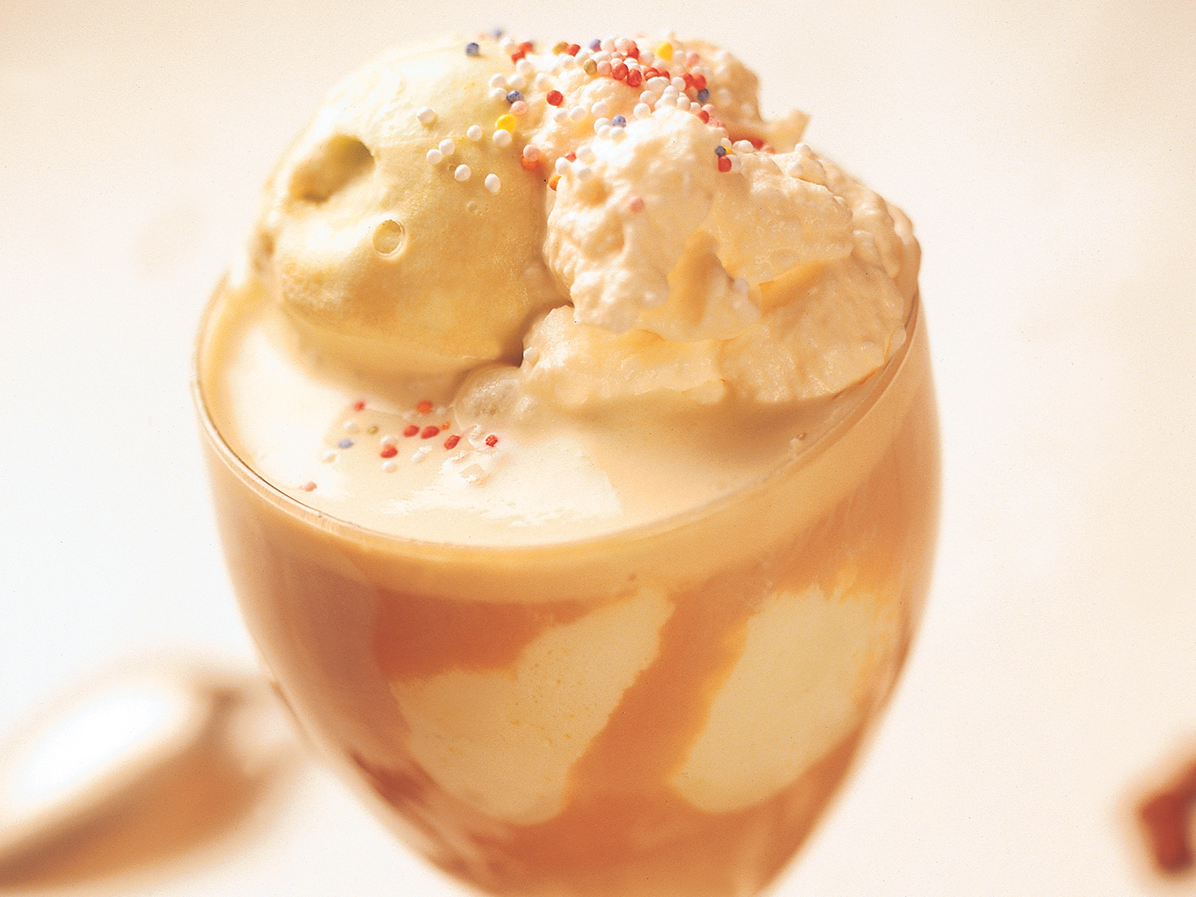 Kaada lasien pohjalle kuuma kahvi ja pane päälle jäätelöpallot. Koristele vaahdotetulla kermalla ja nonparelleja. Nauti heti.