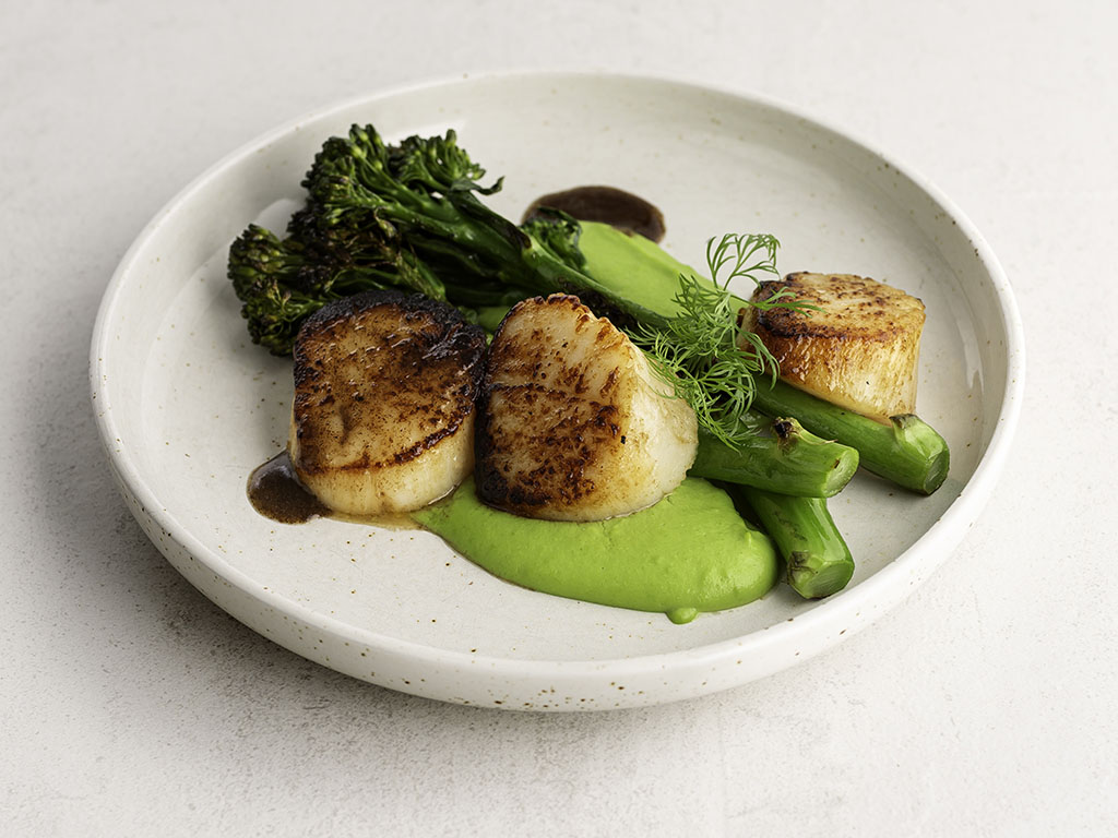 Mausta kampasimpukat suolalla. Paista ruskistetussa voissa noin 1 minuutin per puoli.