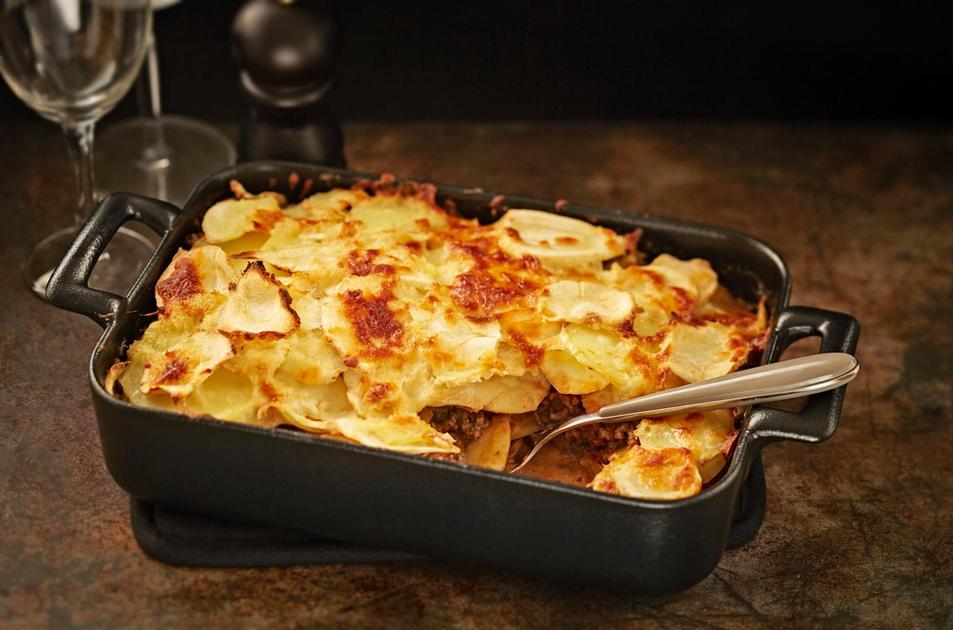 Palsternakka-jauhelihapaistos kootaan palsternakasta, perunasta ja jauhelihasta. Kermalla mehevöitetty laatikko saa lisämakua piparjuuresta ja juustosta.