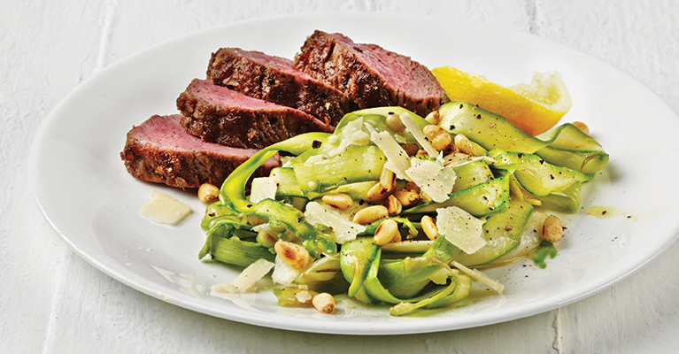 Lisää parmesaanilastut ja pinjansiemenet parsan päälle tarjoiluhetkellä.