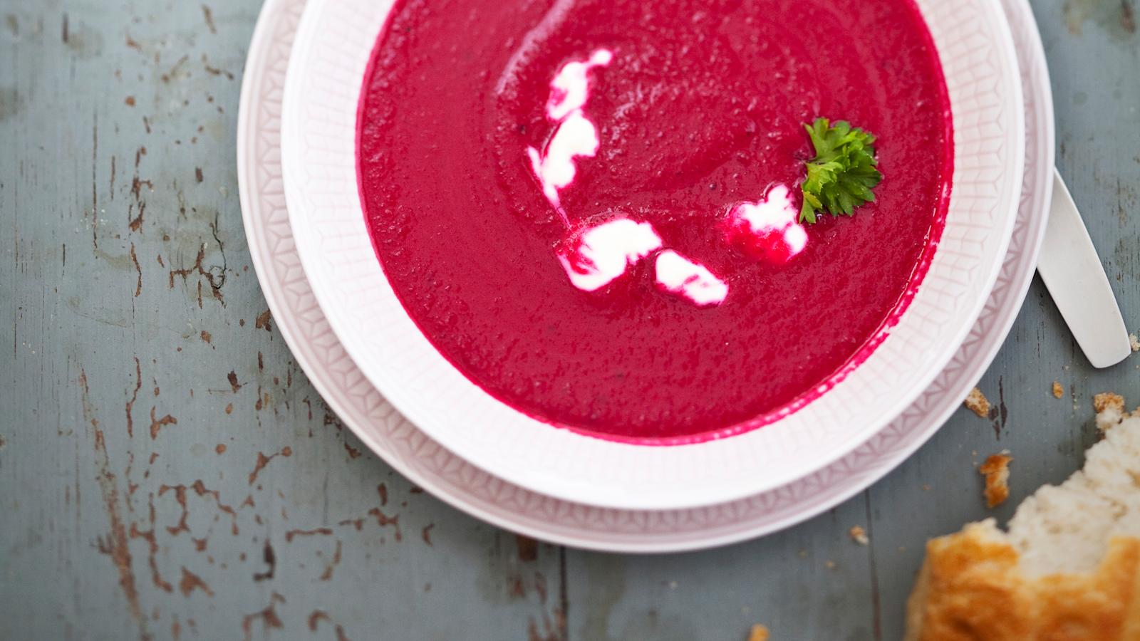 Pehmeä punajuurikeitto on upean makuista täyteläisen fetajuustokerman kanssa. Kokeile värikästä keittoa sellaisenaan lounaana tai juhlavamman aterian alkukeittona.