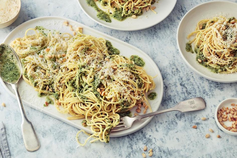 Pestopasta on herkullinen arkiruoka. Pesto valmistuu nopeasti monitoimikoneella tai sauvasekoittimella, mutta sen voi tehdä myös perinteisesti morttelissa jauhaen.