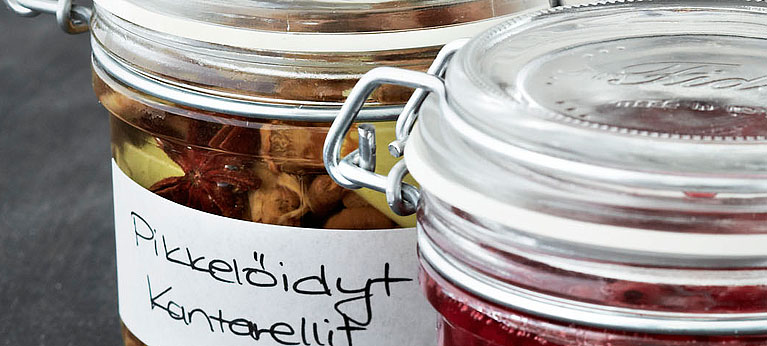 Puhdista kantarellit huolellisesti, ja laita ne kannelliseen astiaan.