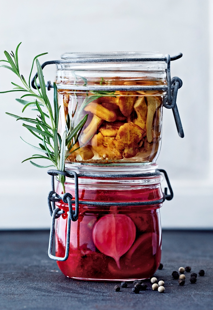 Kaada liemi sienten /vihanneksien päälle, ja anna maustua kylmässä vähintään vuorokausi