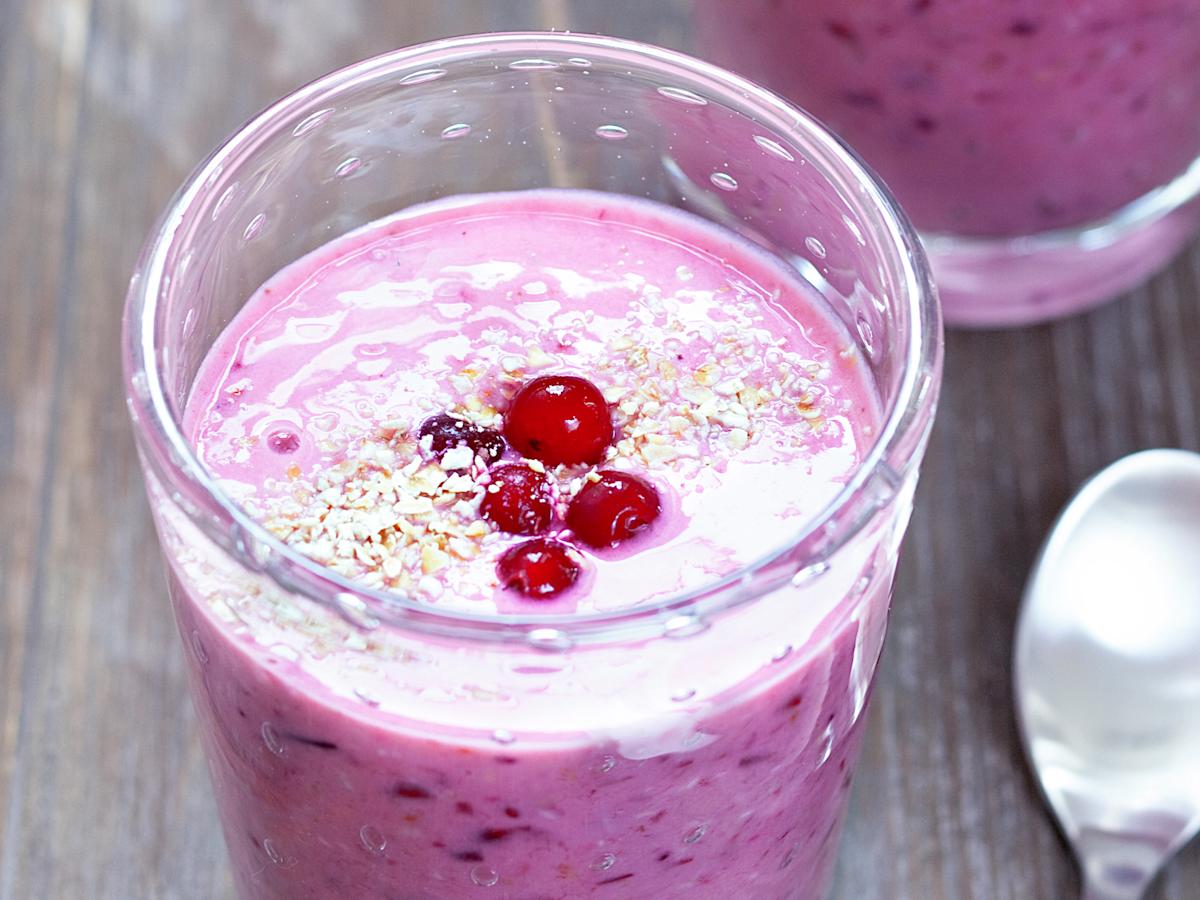Määrä Ainesosa 1 kpl banaani 3 dl maustamatonta jogurttia 2 dl puolukoita 1/2 dl kauraleseitä 2 rkl juoksevaa hunajaa
