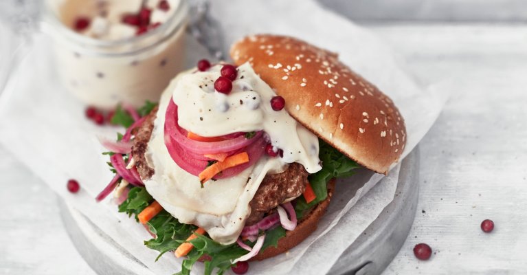 Paista burgerpihvi pannulla tai grillissä. Mausta suolalla ja pippurilla. Lisää loppuvaiheessa runsaasti juustoa pihvin päälle ja anna sen sulaa.