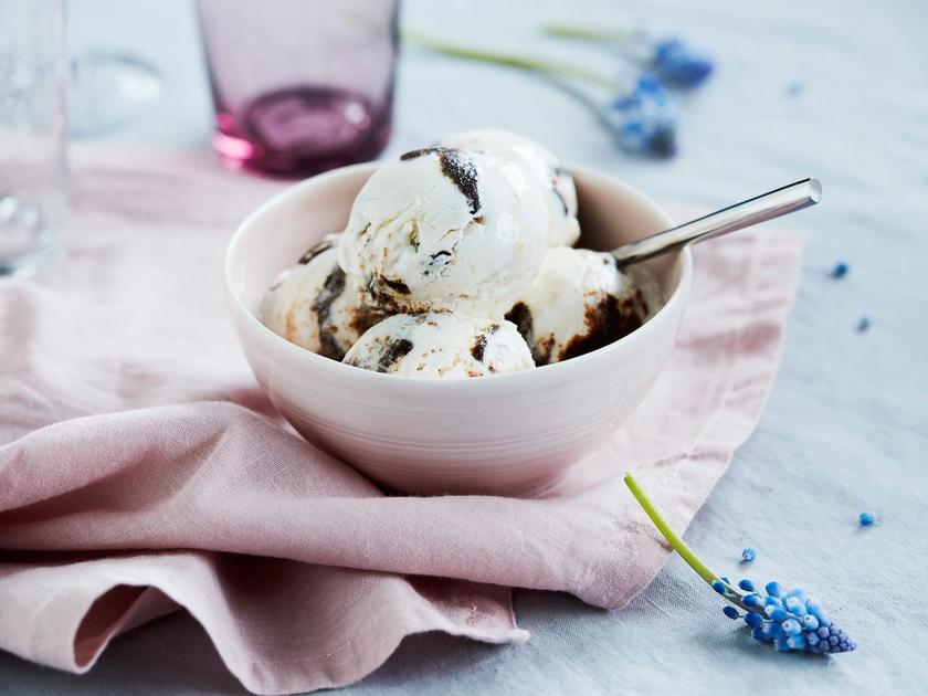 Lusikoi pakastuksen kestävään vuokaan kerroksittain jäätelöseosta ja mämmiä. Pakasta vähintään 2 tuntia. Nosta jäätelö pehmenemään huoneenlämpöön hetki ennen tarjoilua ja pyörittele siitä palloja.