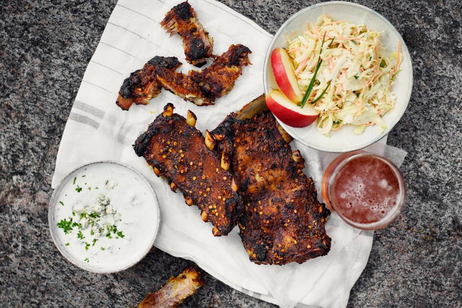 Ribsit maustetaan rubilla eli kuivamausteseoksella. Tarjoa mureat ribsit sinihomejuustodipin ja raikkaan fenkolicoleslawn kanssa. Tämä on kesäruokaa parhaimmillaan!