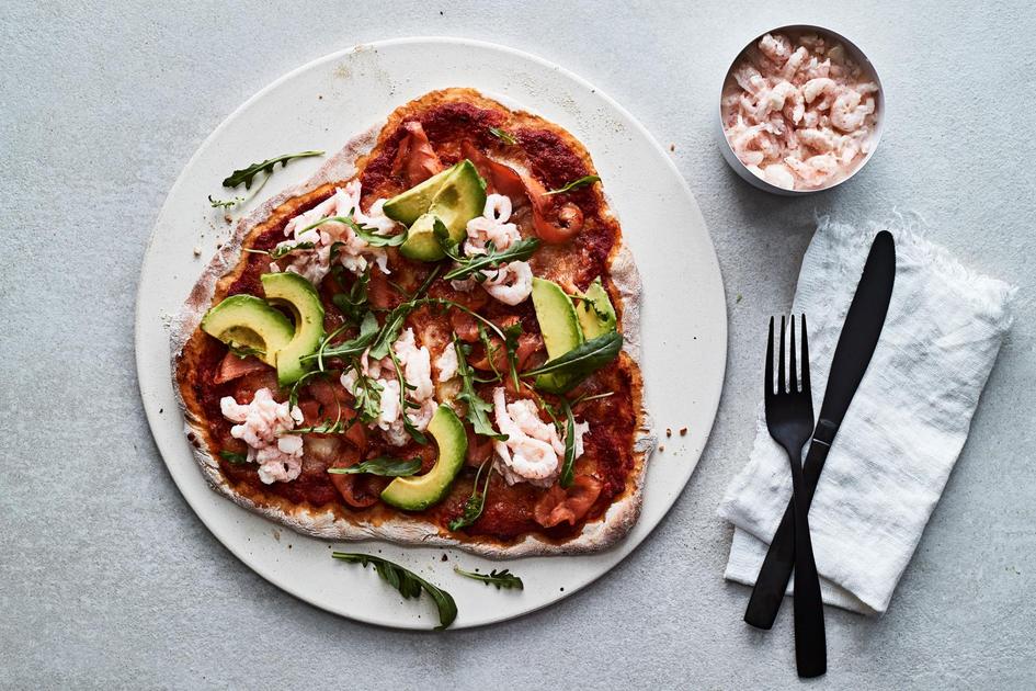 Valmista roomalainen herkkupizza kotiuunissa tai pihagrillissä. Viimeistele kylmäsavulohipizza raikkaalla katkaraputahnalla, avokadolla ja rucolalla.