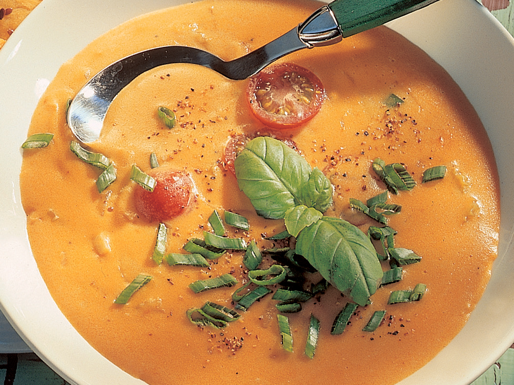 Laita riisi kiehumaan suolalla maustettuun veteen. Kuori ja paloittele kasvikset ja lisää ne joukkoon. Lisää myös tomaattimurske.Keitä, kunnes riisi on kypsää.Soseuta keitto ja lisää samalla tarpeen mukaan vettä sekä yrttiliemikuutio. Sekoita ja kuumenna kiehuvaksi keittämättä. Mausta. Tarjoa lisänä muna-riisipasteijoita.