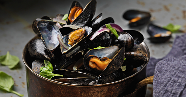 Kun simpukat ovat avautuneet, ruoka on valmista.