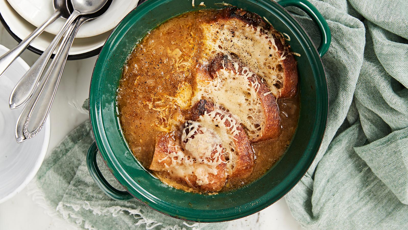 Klassinen ranskalainen herkkukeitto syntyy karamellisoiduista sipuleista. Paahda maukkaan sipulikeiton pinnalle leipää ja kuorruta juustoraasteella. Tarjoa lounaalla tai iltaruokana.