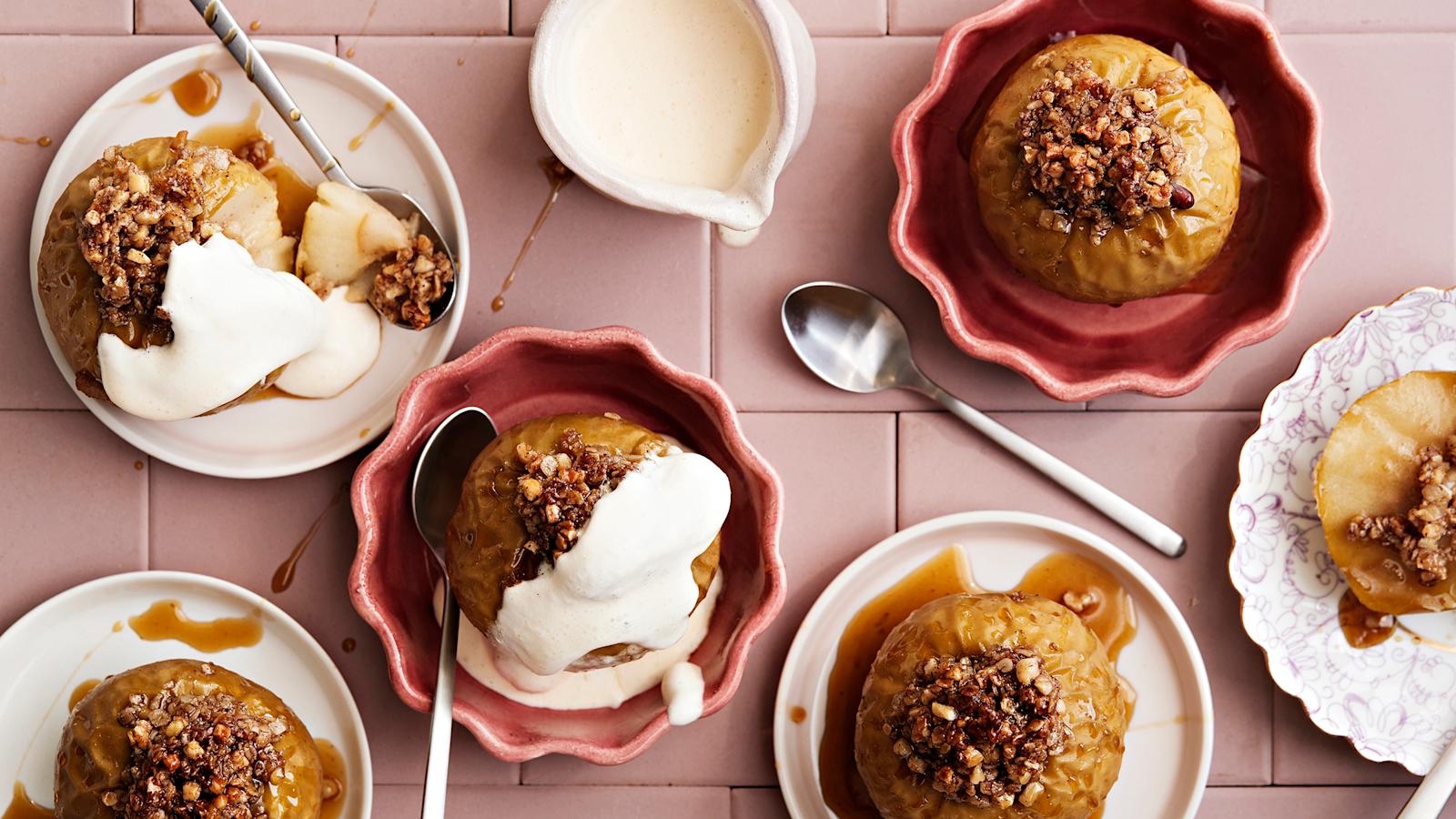Parhaat uuniomenat syntyvät hapokkaista kotimaisista omenoista, joiden sisällä on rapeaksi paahtuva manteli-kauratäyte. Perinteinen omenajälkiruoka maistuu vaniljakastikkeen kanssa.