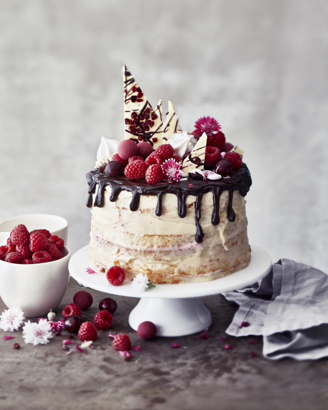 Kuorruta kakku suklaalla päältä ja anna valua reunoille.
