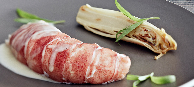 Tarjoa lisänä karamelisoitua endiiviä.Kokoa annos ja viimeistele rakuunanlehdillä.