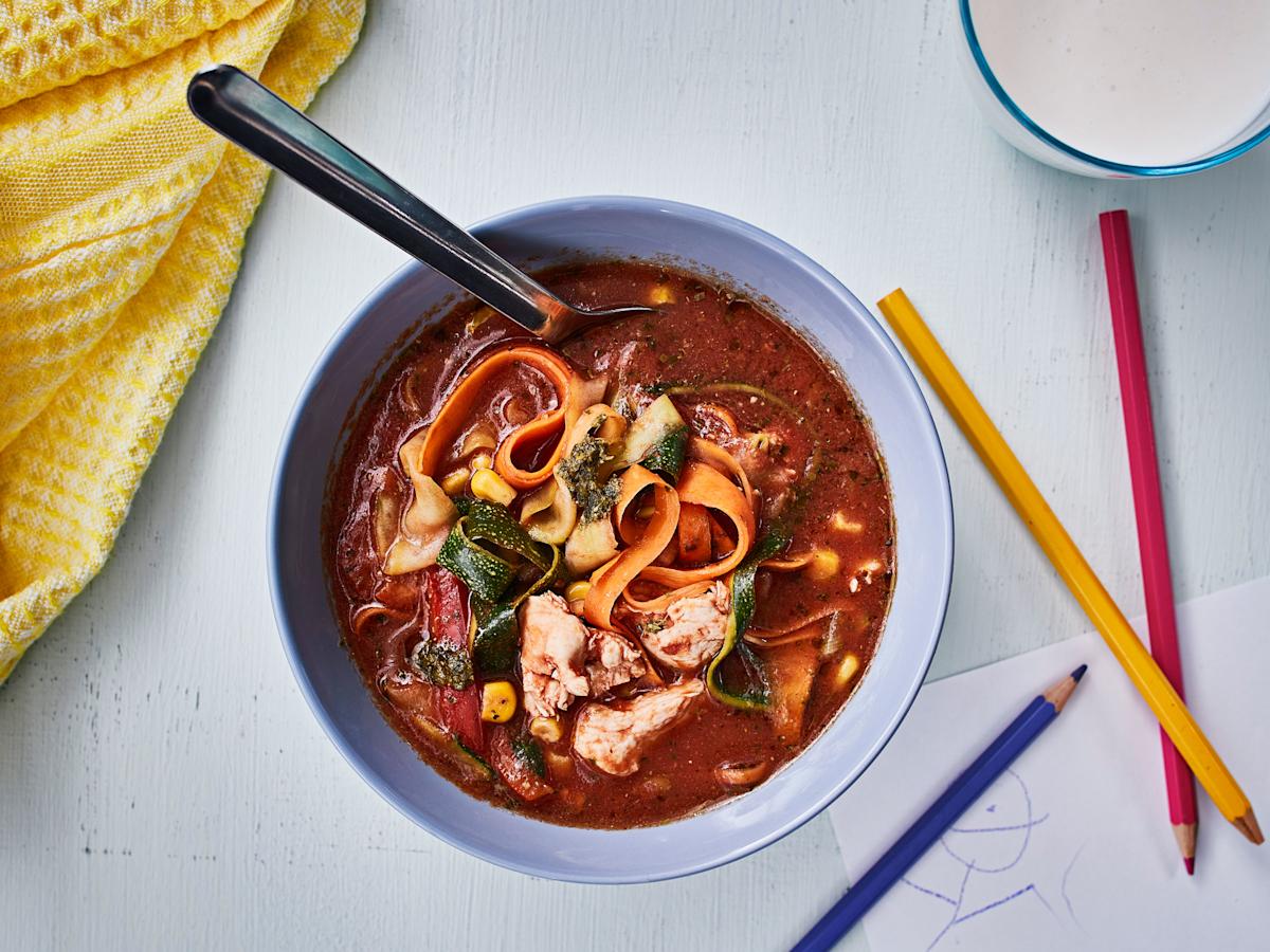 Värikäs pesto-kanakeitto