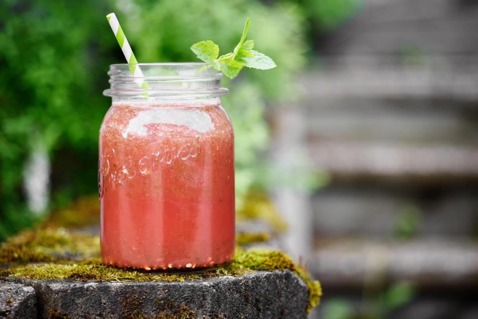 Raikas, yrteillä rikastettu vesimelonivesi on oiva hellepäivän viilentäjä ja vedellä jatkettuna hyvä janon sammuttaja.