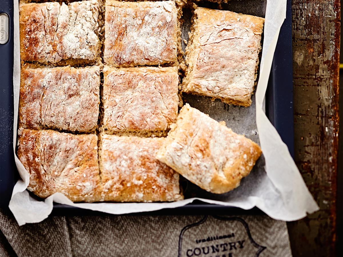 Yrtti-juustoleipä valmistuu helposti pellillä tai vuoassa. Jaa taikina taikinapyörällä annospaloiksi ennen paistamista, jolloin vältyt sämpylöiden pyörittelyltä!