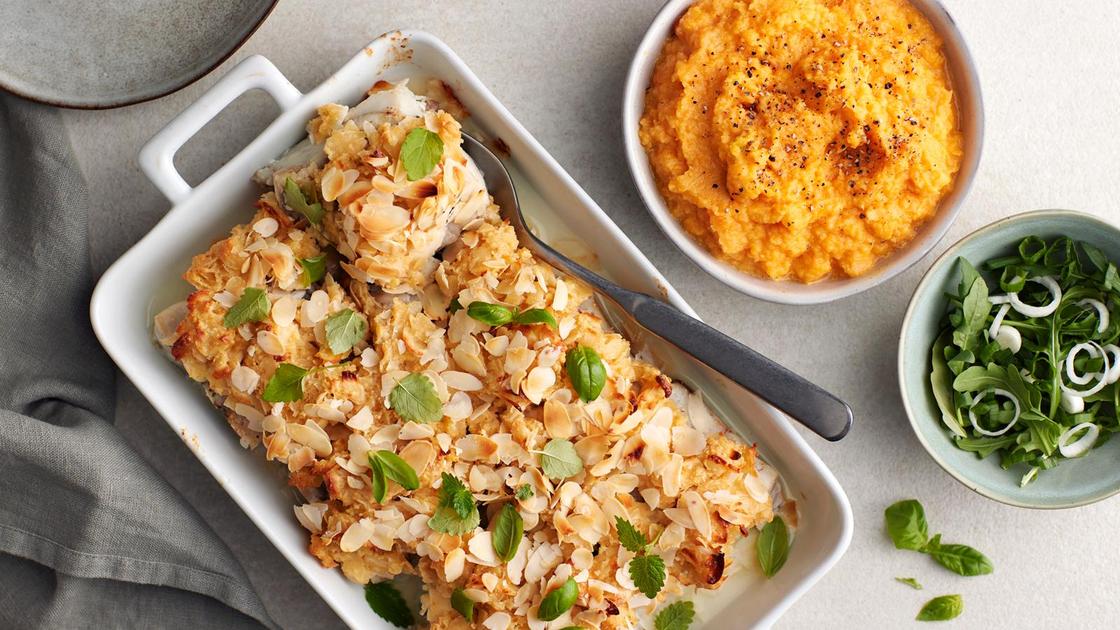 Tuttu mantelikala syntyy helposti pakastekalasta. Mausta kala tuoreilla yrteillä ja levitä päälle mantelinen korppujauhokuorrute. Tarjoa bataattimuusin kanssa.