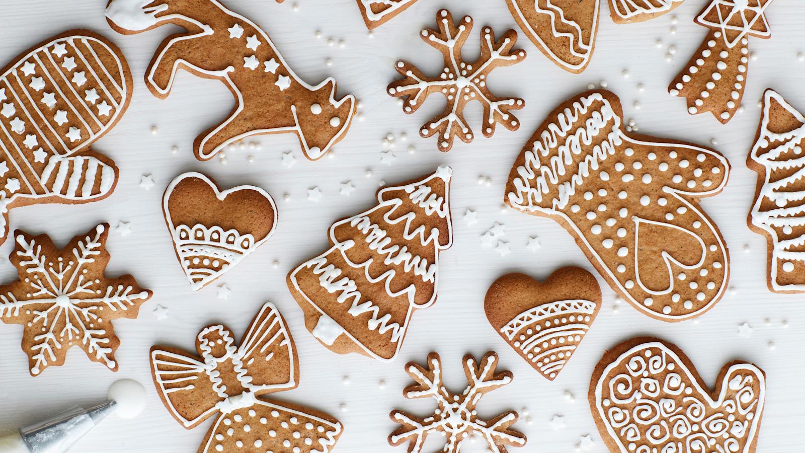 Piparkakuilla koristeltu kakku sopii jouluaaton jälkiruoaksi