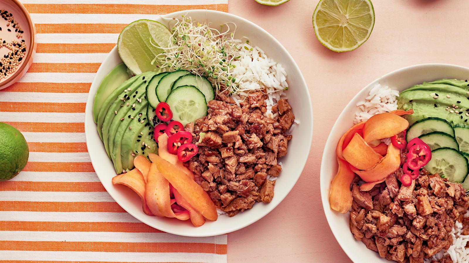 Lautaselle voi pilkkoa kurkkua, kaalia, paprikaa, tomaattia tai avokadoa. Myös pakasteesta löytyvän herne- tai maissipussin puolikkaan voi hyvin sekoittaa joukkoon.