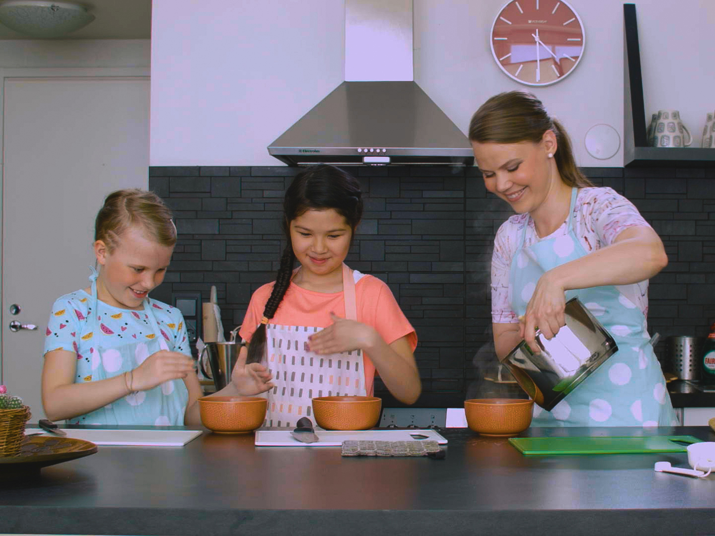 Ässäkokki-kurssilla 7–12-vuotiaat kokkaavat satokauden parhaista antimista Martta-ohjaajan opastuksella. Tällä videolla Ässäkokit valmistavat raparperikiisseliä.