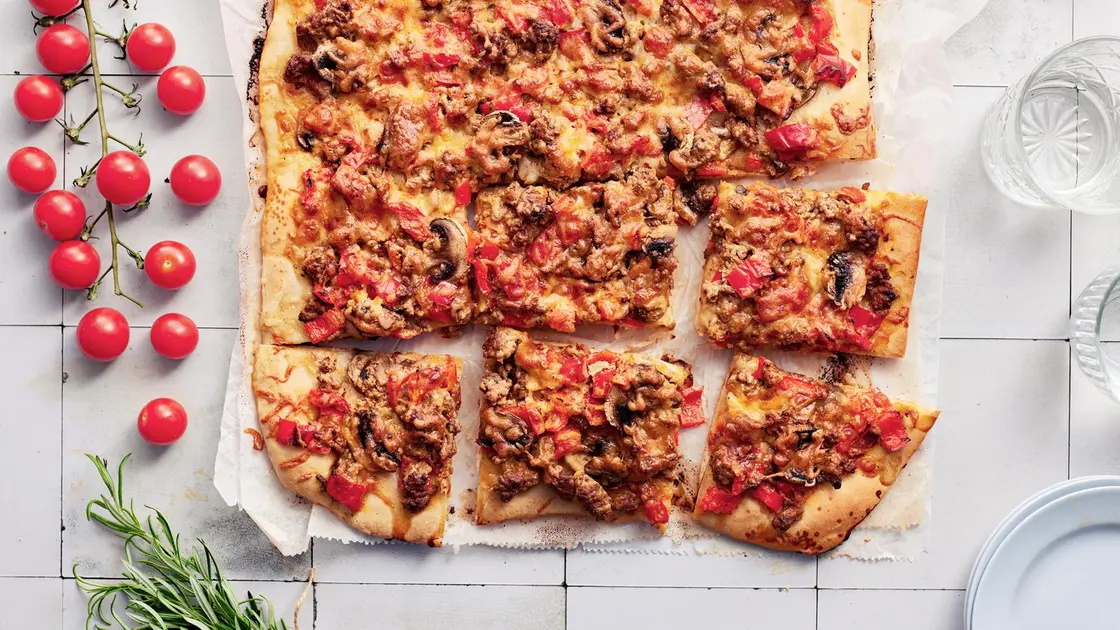 Mausta ruokaisa jauhelihapiirakka ndujalla eli italialaisella salamilevitteellä. Levite tuo piirakkaan tulisuutta ja sitä on helppo lisätä täytteeseen oman maun mukaan. Jauhelihan lisäksi piirakassa maistuvat herkkusienet, paprika ja juusto. Pehmeä pizzapohjan tyylinen pohja tasapainottaa mausteisen täytteen makua.